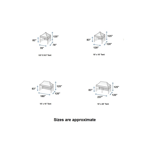Available size: 5ft x 5ft, 6.5ft x 6.5ft, 10ft x 10ft, 10ft x 15ft, 10ft x 20ft