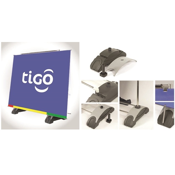 Weather resistant double-sided aluminum outdoor banner frame. Very easy to use with vinyl banners. Can be used single sided or double sided. Ideal for indoor and outdoor applications like outdoor events, exhibitions, trade shows, retail displays. Comes with a carrying bag. Banner not included. Not recommend for use in excessive wind conditions. Printing is also available at extra cost.