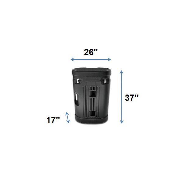 Pop-up display rigid carrying case with wheels. Foldable countertop and graphics are optional. Weight: 26lbs Material: PVC Color: Black