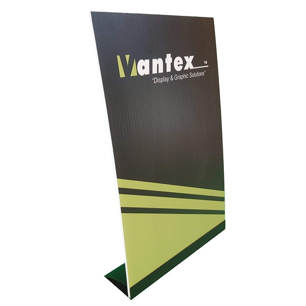 Table tabletop aluminum poster holder comes in black. This tabletop sign holder offers a sleek, modern look. Perfectly fits 5mm styrene or the same thickness rigid material. Single sided. Perfect for retail, point-of-purchase, and trade show advertising. Poster not included; printing is available at an extra cost. Indoor use only.