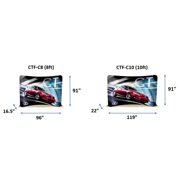 The tension fabric system is different from the traditional expandable type pop ups. Comes in straight, curved, and S shapes. A simple, lightweight framework that clicks together effortlessly. 1 1/4″ clear anodized snap tube aluminum frame system with *pillow case* polyester fabric graphic. Fire-retardant (CAN/ULC-S109) polyester fabric is also available. Comes with a carrying bag. Tabletop version also available for 6ft wide x 5ft high and 8ft wide x 5ft high. We offer complete packages including printing and finishing, or we can supply hardware only. Lights are not included and are optional. Indoor use only. Printing usually takes 7 business days.