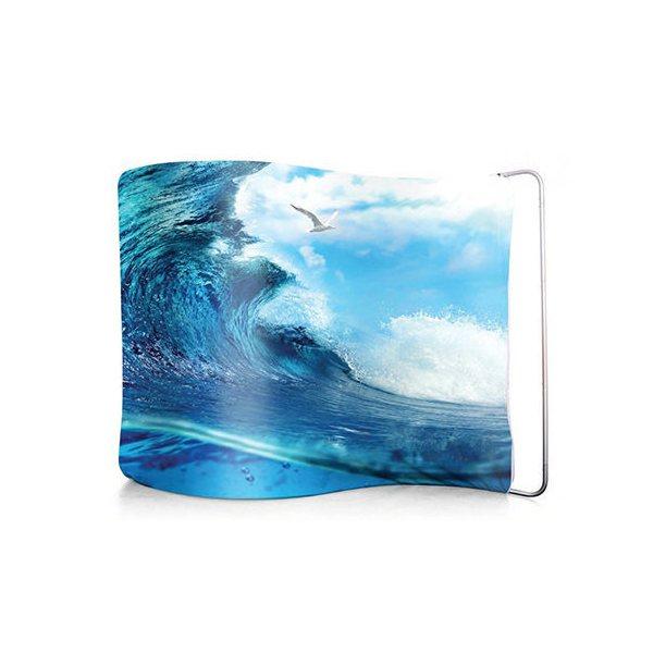 The tension fabric system is different from the traditional expandable type pop ups. Comes in straight, curved, and S shapes. A simple, lightweight framework that clicks together effortlessly. 1 1/4″ clear anodized snap tube aluminum frame system with *pillow case* polyester fabric graphic. Fire-retardant (CAN/ULC-S109) polyester fabric is also available. Comes with a carrying bag. We offer complete packages including printing and finishing, or we can supply hardware only. Lights are optional. Indoor use only. Printing usually takes 7 business days.
