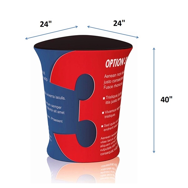 The tension fabric counter is lightweight and easy to transport. The counter can support up to 45 lbs. Comes in triangle, oval, and rectangular shapes. A simple, lightweight framework that clicks together effortlessly. Fire-retardant (CAN/ULC-S109) polyester fabric is also available. Comes with a carrying bag. We offer complete packages including printing and finishing, or we can supply hardware only. Indoor use only. Printing usually takes 7 business days.