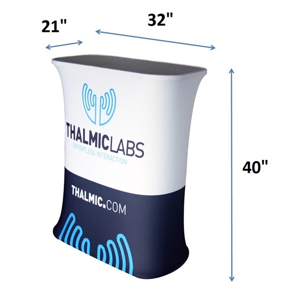 The tension fabric counter is lightweight and easy to transport. The counter can support up to 45 lbs. The LED backlit version is also available. A simple, lightweight framework that clicks together effortlessly. Fire-retardant (CAN/ULC-S109) polyester fabric is also available. Comes with a carrying bag. We offer complete packages including printing and finishing, or we can supply hardware only. Indoor use only. Printing usually takes 7 business days.