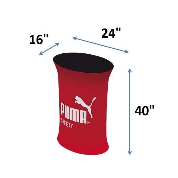 The tension fabric counter is lightweight and easy to transport. The counter can support up to 45 lbs. Comes in triangle, oval, and rectangular shapes. A simple, lightweight framework that clicks together effortlessly. Fire-retardant (CAN/ULC-S109) polyester fabric is also available. Comes with a carrying bag. We offer complete packages including printing and finishing, or we can supply hardware only. Indoor use only. Printing usually takes 7 business days.