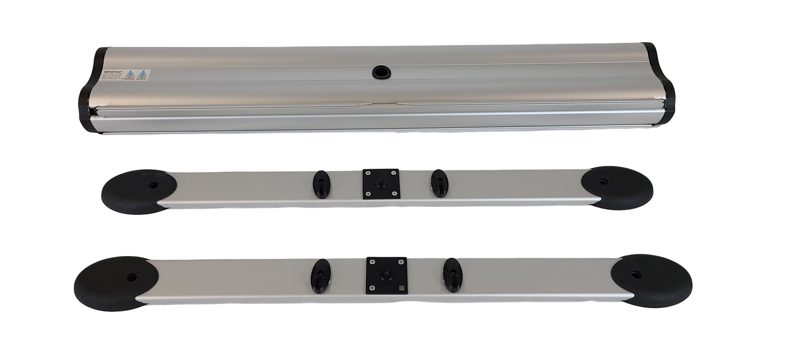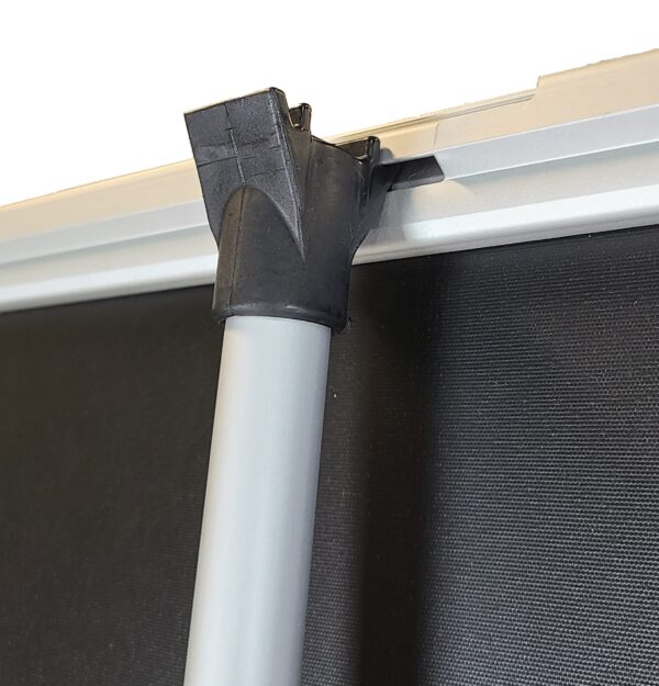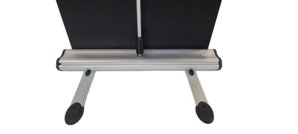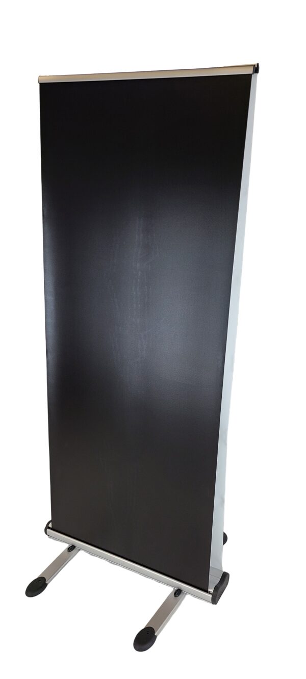Double sided outdoor roll up stand. It can also be used indoors. Accepts 2 banners. The spring-loaded support pole allows the banner to swing in the wind. Comes with a carrying bag. Not recommended for use in excessive wind conditions. Banners not included. Printing is also available at extra cost.