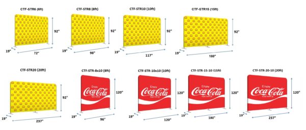 The straight tension fabric system is different from the traditional expandable type pop ups. Available in 6ft, 8ft, 10ft, 15ft, and 20ft wide. The standard height is 7.5ft. 10ft high option is available on 8ft, 10ft, 15ft, and 20ft wide. A simple, lightweight framework that clicks together effortlessly. 1 1/4″ clear anodized snap tube aluminum frame system with *pillow case* polyester fabric (205gsm knitted polyester) graphic. Fire retardant (CAN/ULC-S109) polyester fabric is also available. Comes with a carrying bag. We offer complete packages including printing and finishing or we can supply hardware only. Lights are optional. Indoor use only. Printing usually takes 7 business days.