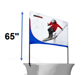 The tabletop tension fabric system is different from the traditional expandable type pop ups. Only available in straight shape. A very simple lightweight framework that clicks together effortlessly. 1″ black powder coated snap tube aluminum frame system with *pillow case* fabric (205gsm knitted polyester) graphic. The frame is securely attached to the table by C-clamps. Comes with a carrying bag. We offer complete packages including printing and finishing or we can supply hardware only. Lights are optional. Indoor use only. Printing usually takes 7 business days.
