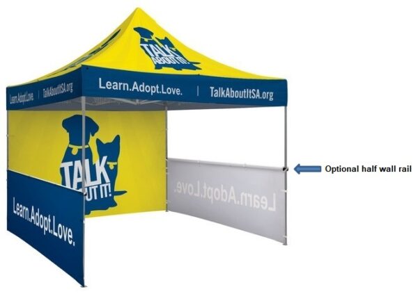 – Optional iron weights, sandbags, gutters, half wall rails, multi-tent connectors, ground pegs, and flag pole holder kits are also available.